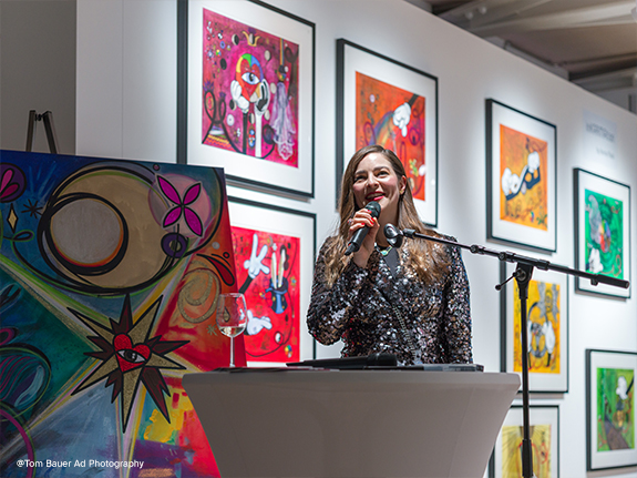 Parallel zur Präsentation von „InKARMAtion“ ist im Neuen Kunstmuseum die große Sonderausstellung „James Rizzi – Home Away from Home“ zu sehen, was den Abend zusätzlich mit internationalem Flair bereicherte.