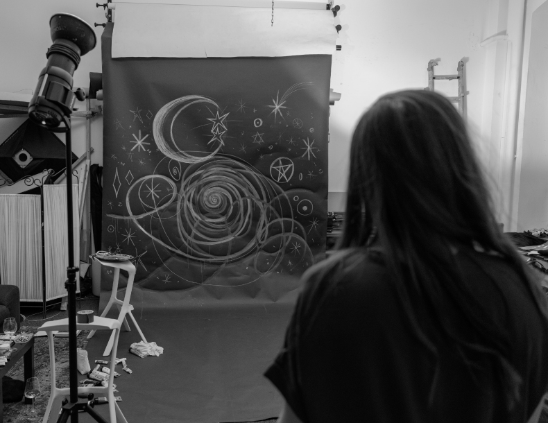 Gleichzeitig integriert Karma ihre Kindheitsträume und Fantasien in ihre Kunst. Comics und mythische Wesen dienen ihr als Inspirationsquelle, die sie auf ihre ganz eigene Weise in ihre Werke einfließen lässt. Karinas Kunst spiegelt ihre unstillbare Neugier und ihre Faszination für das Unbekannte und die Materie wider. Sie erforscht die Dynamik von Licht und Schatten, die Verbindung von Körper und Geist sowie das Zusammenspiel zwischen Realität und Fantasie.