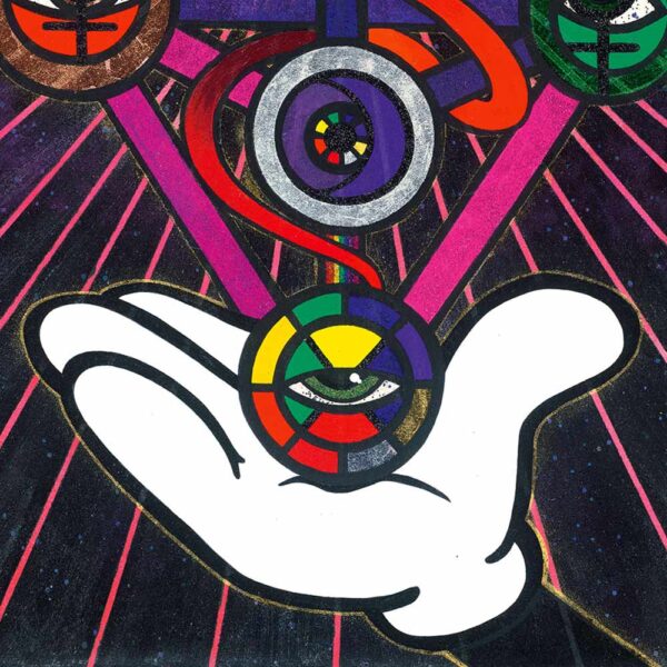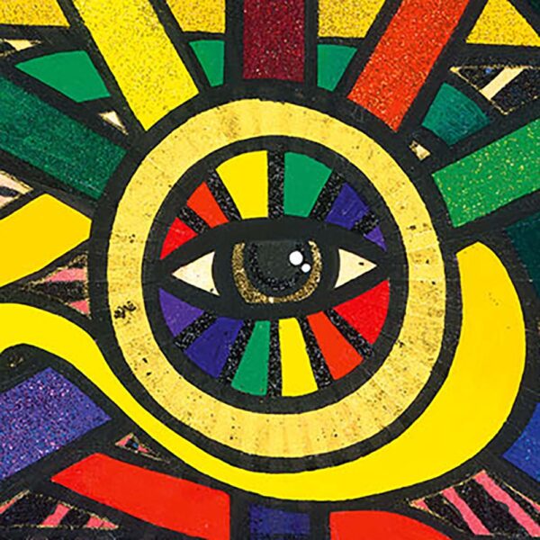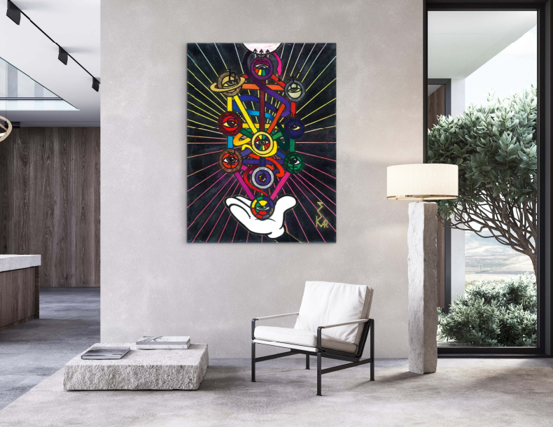 Ein farbiges Netz aus Licht und Energie verbindet Ursprung und Ziel. Kabbala, Tarot und Schlange formen ein kosmisches System des Wandels – Sinnbild für den ewigen Kreislauf von Erkenntnis, Liebe und Rückkehr ins Ganze.