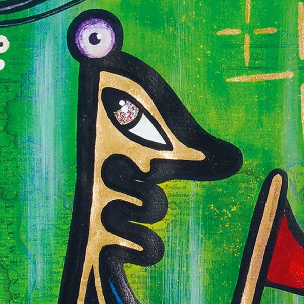 69,5 x 54,5 cm, Gezeichnet auf antiker Landkarte, Büttenpapier, Mixed Media, Naturpigmente, Acryl & Aquarell, Sterlingsilber, 2025