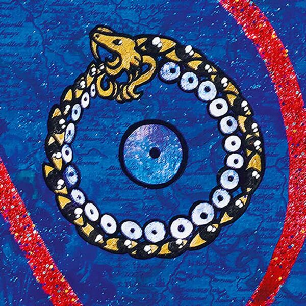 Der rote Linienverlauf symbolisiert den ewigen Kreislauf von Leben, Tod und Wiedergeburt. Zeichen wie der Skorpion, die Zahl 13, die Rune Eihwaz sowie der Ouroboros (die sich selbst verschlingende Schlange) verweisen auf Transformation, Schutz und den Übergang zwischen „alt“ und „neu“.
