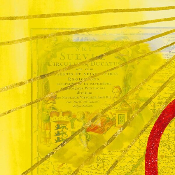 69,5 x 54,5 cm, gezeichnet auf antiker Landkarte, Büttenpapier, Mixed Media mit Naturpigmenten, Acryl & Aquarell, 2025