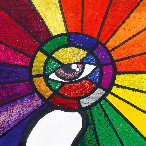 Strahlen und Farbbahnen symbolisieren die Integration von Körper, Geist, Herz und Seele sowie den Übergang in ein erweitertes Bewusstsein. Geometrische Formen spiegeln den „Tanz des Lebens“, der nun bewusst geführt wird.