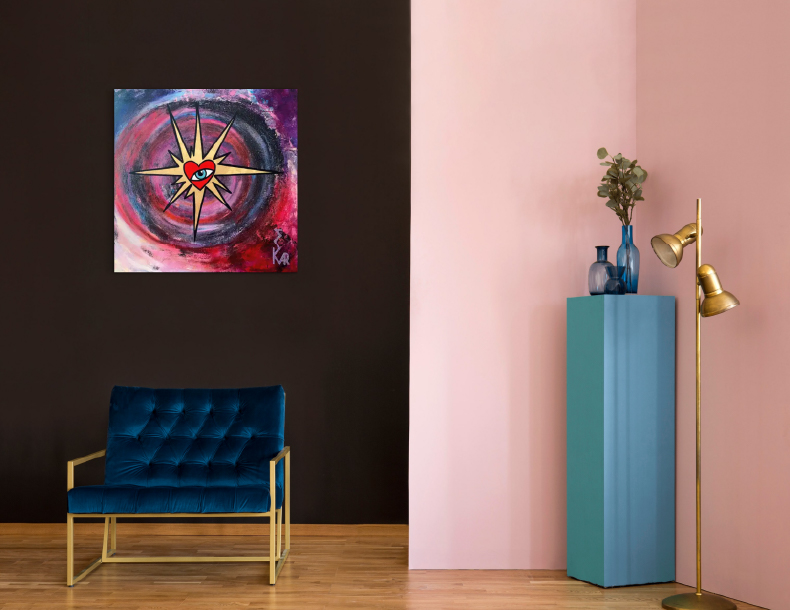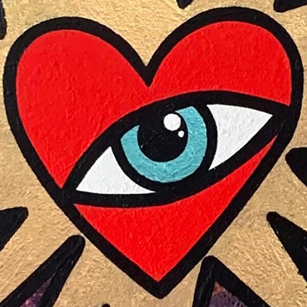 Aus einem Wirbel aus Farbe und Bewegung erstrahlt ein goldenes Licht – das sehende Herz als Sinnbild innerer Klarheit, Liebe und Vollendung.